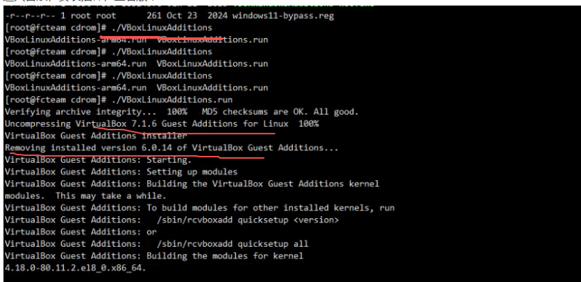 安装完成后,重新执行 ./VBoxLinuxAdditions.run。