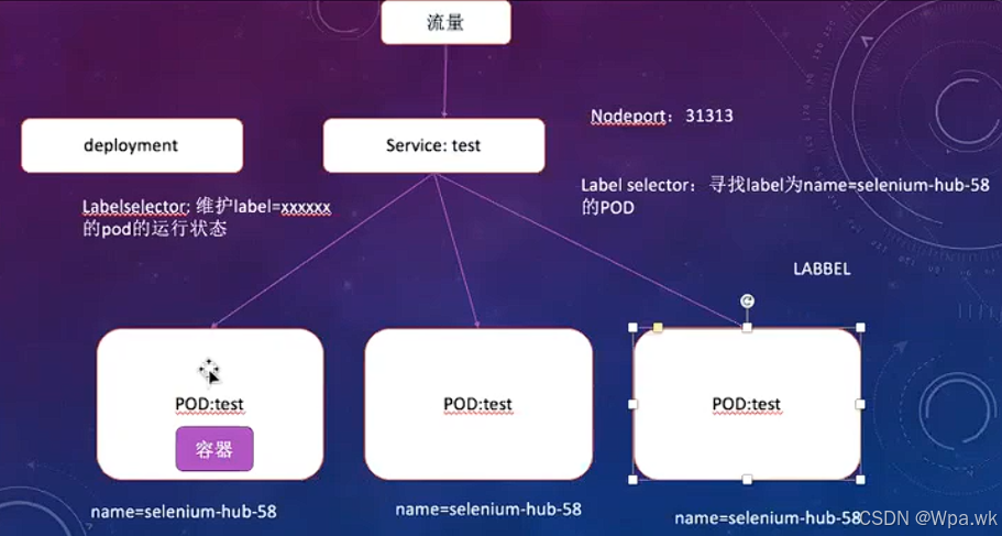 1.当流量来临通过Service管理所有网络请求,通过Lable分发到Pod