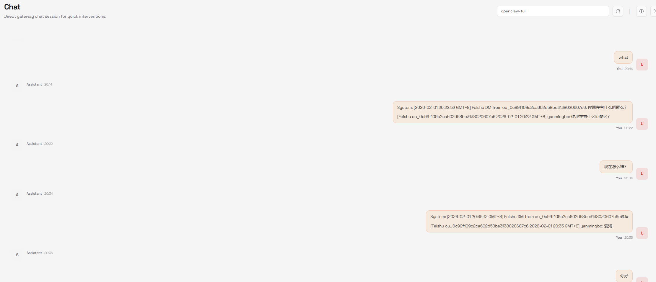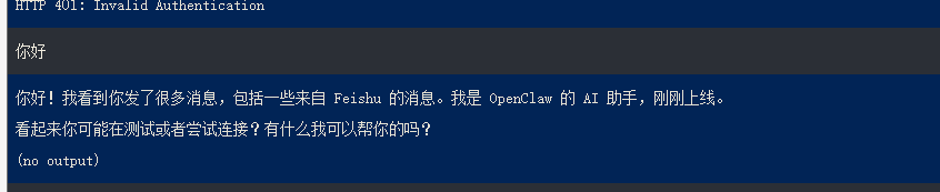 控制台显示 (no output) 控制台对话命令是openclaw tui。