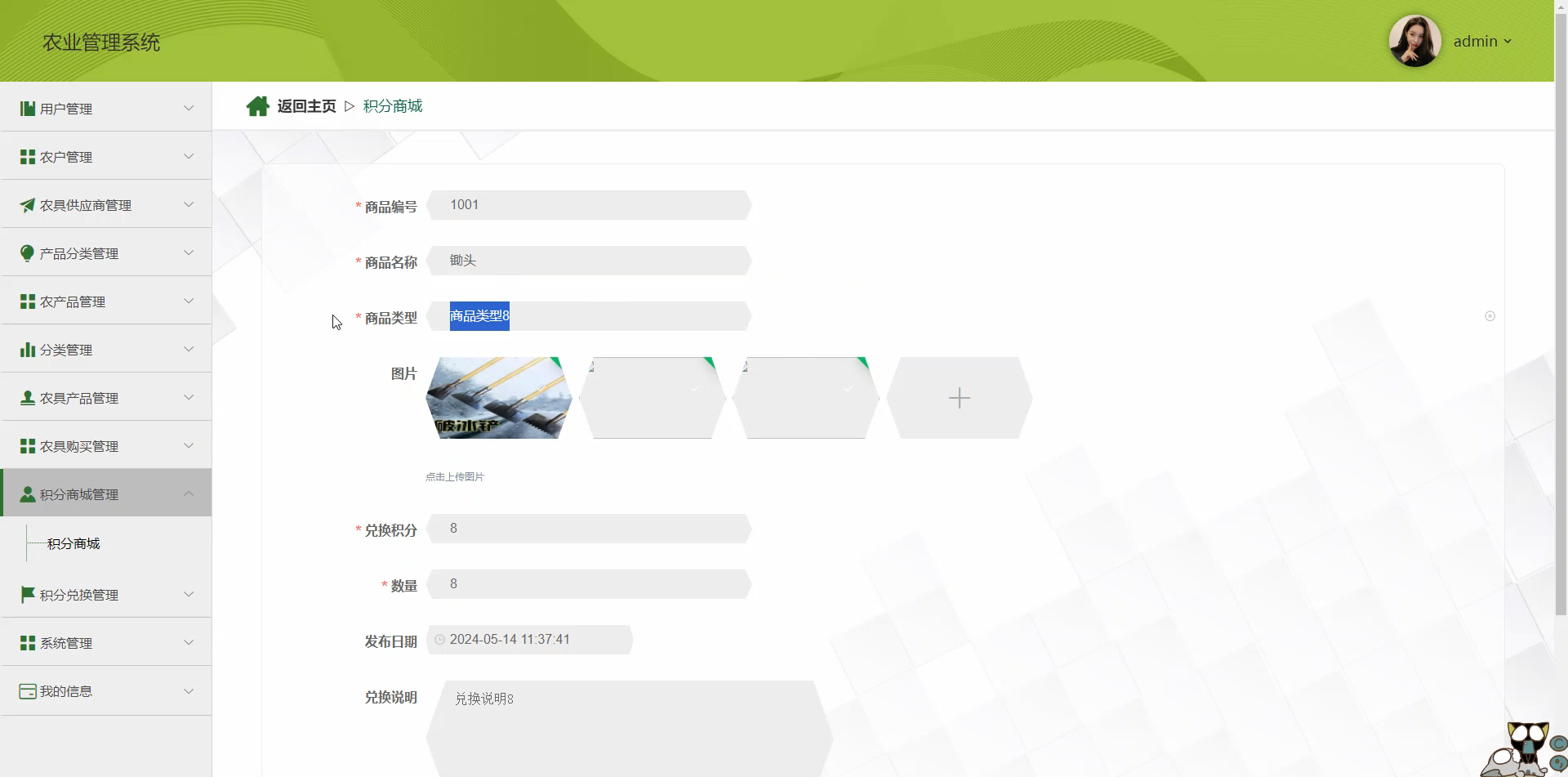 库存管理模块: 对农资的入库、出库、库存盘点进行管理。