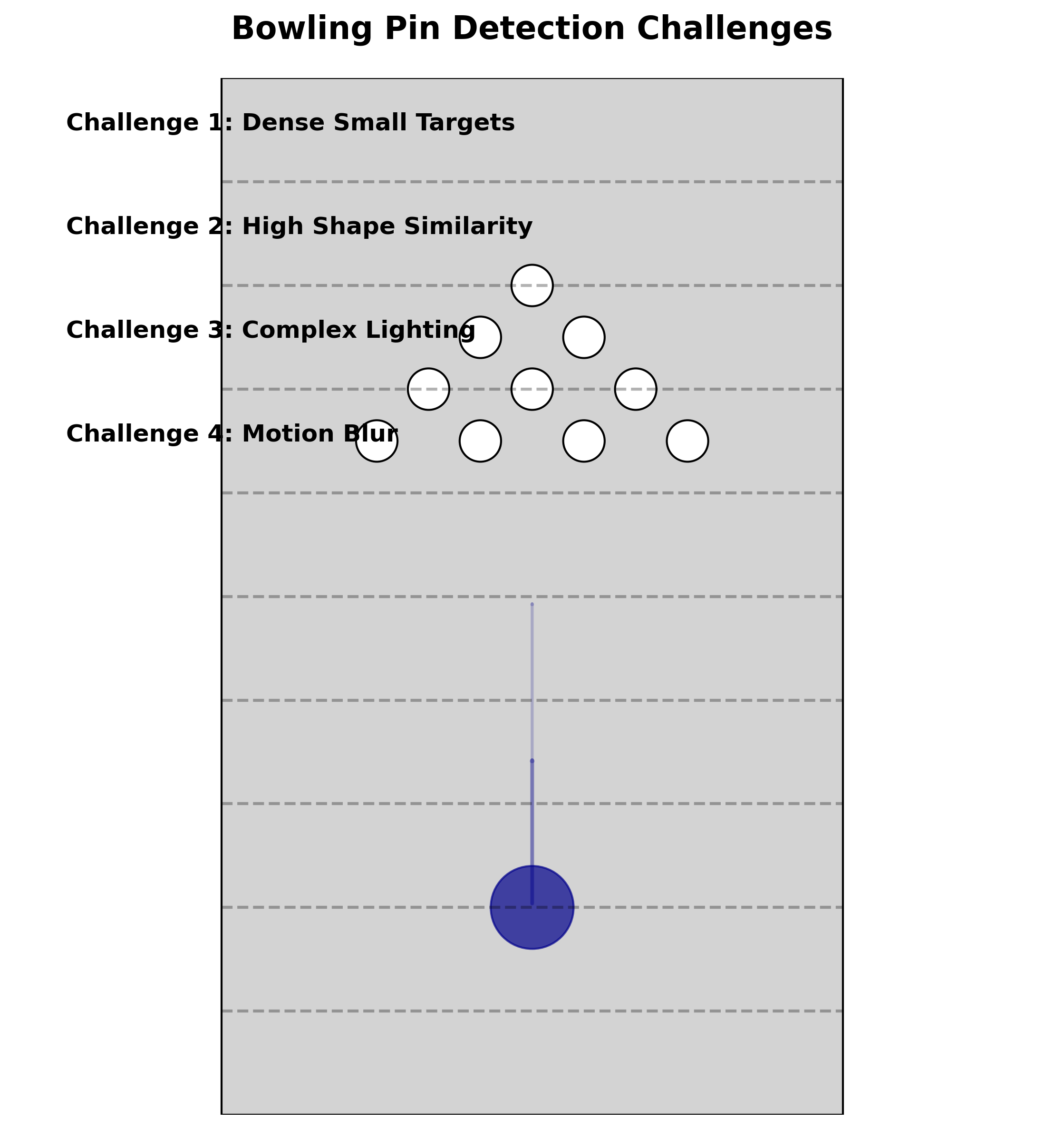 保龄球检测具有其特殊性:保龄球形状相似但纹理和品牌各异,保龄球瓶排列规则但易受光照影响,球道背景复杂且存在相似物体干扰。这些特点使得通用目标检测数据集难以直接应用于保龄球检测任务。