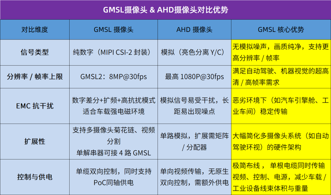 GMSL千兆多媒体串行链路,广泛应用于车载环视(CMS/AVM)、工业机器视觉及高端安防监控等领域。