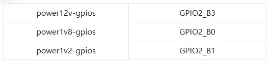 使用扩展GPIO的11pin,13pin,15pin作为J25接口摄像头的power12v-gpios、power1v8-gpios、power1v2-gpios引脚,引脚对应的GPIO如下:
