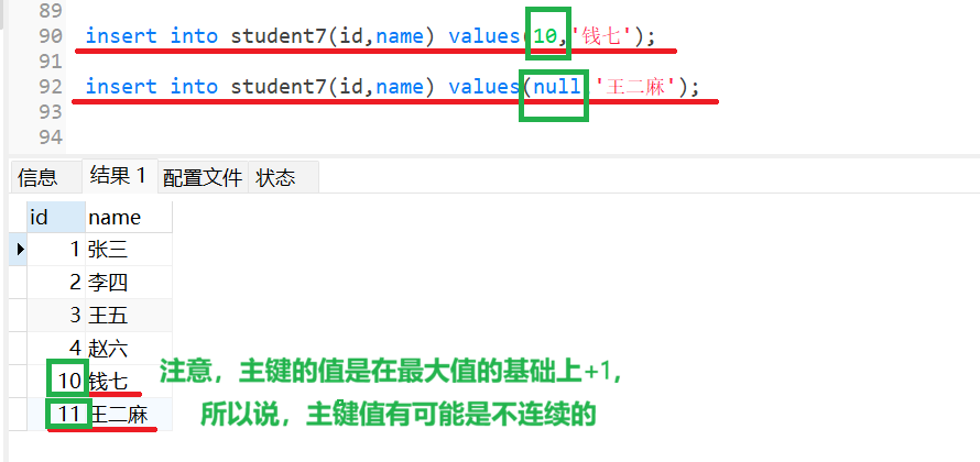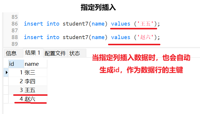 同样,我们也可以自定义主键值,只要主键值不重复即可