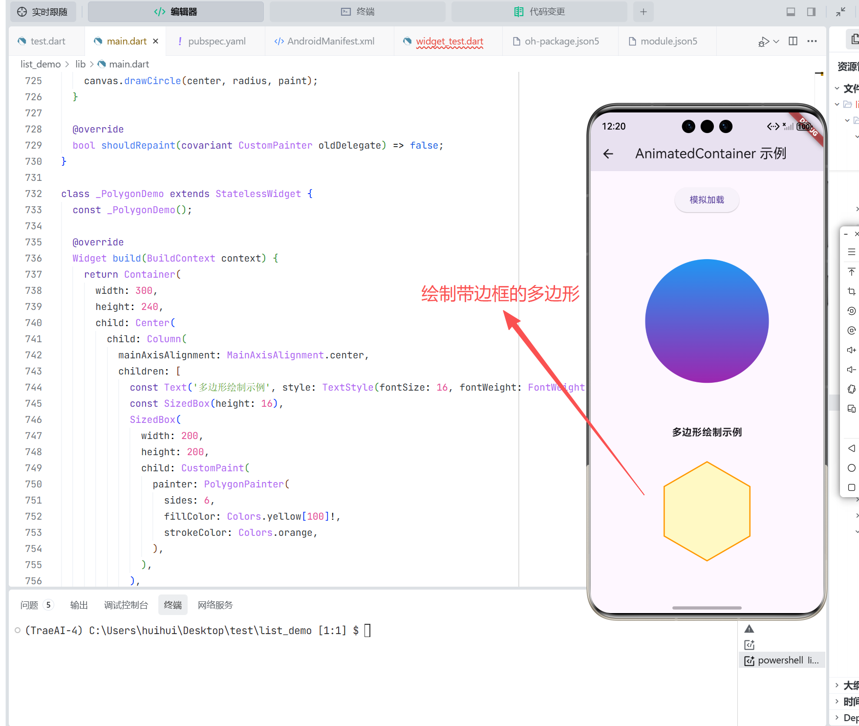 在 Flutter 生态中,CustomPaint 与 CustomPainter 正是为此而生。它们提供了一套声明式、高性能的 API,让你能够通过 Canvas 对象自由绘制路径、图形、文本与图像。更重要的是,这套机制完全基于 Dart 实现,不依赖任何平台原生绘图能力,因此在 OpenHarmony 设备上也能无缝运行。