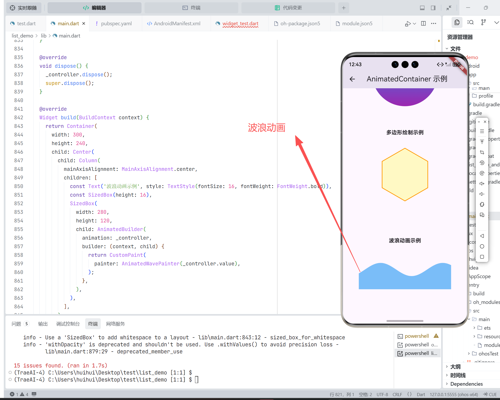 3.1 动画波浪线(结合 AnimationController)