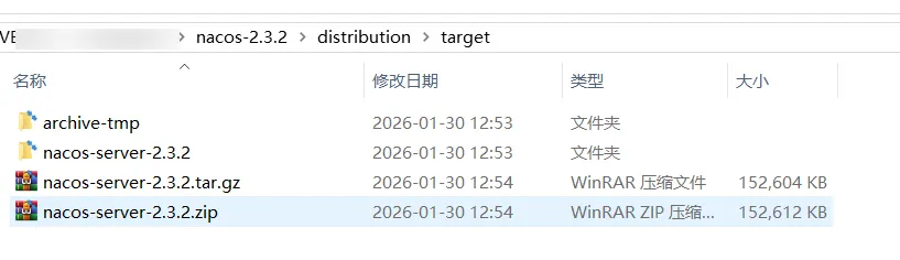 如果构建成功,则在 distribution 模块下有生成的 nacos 包。