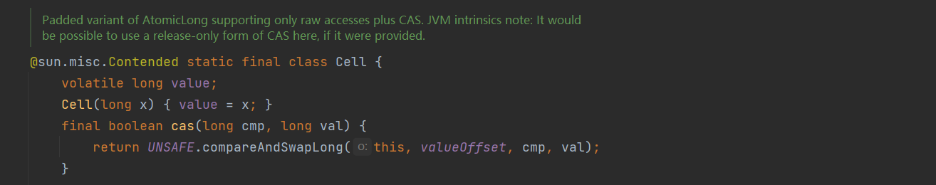 cas(long cmp, long val) 方法:使用 CAS 确保单个 Cell 实例的 value 累加操作是原子性的,是 Cell 单元自身线程安全的核心保障;