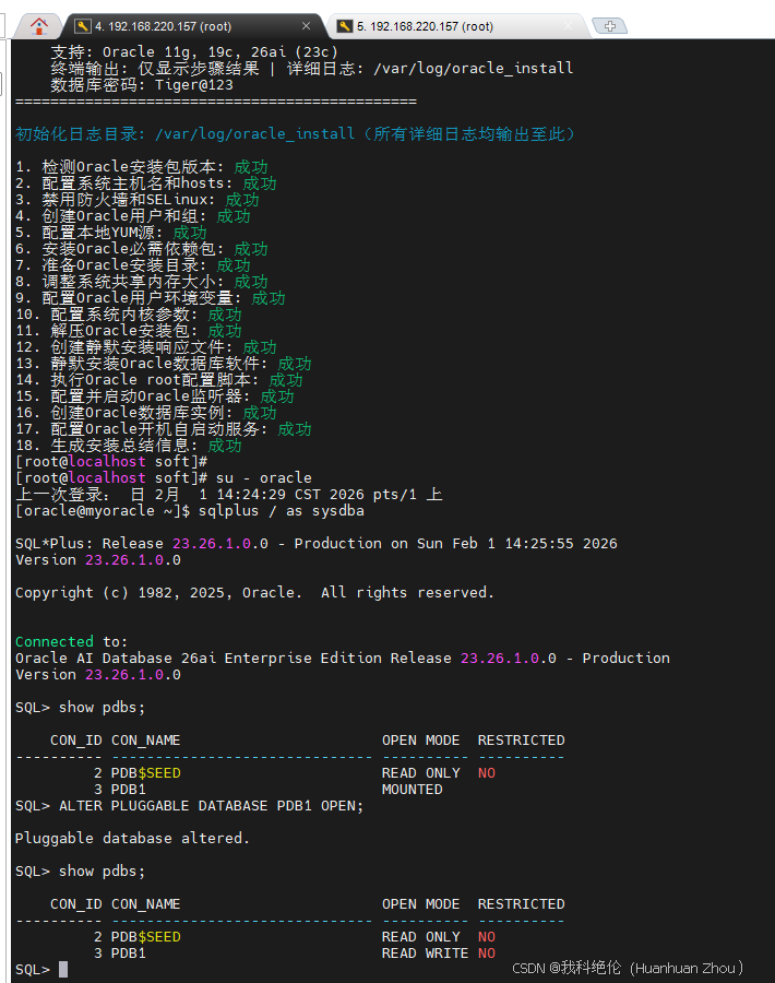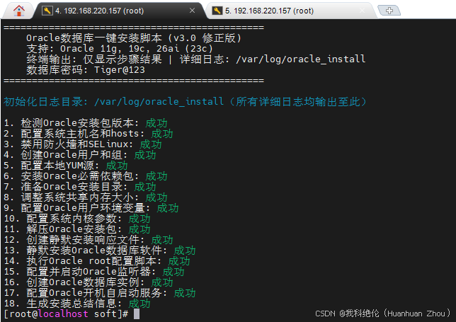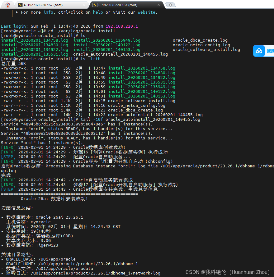 echo " 终端输出: 仅显示步骤结果 | 详细日志: ${ORACLE_LOG_DIR}"