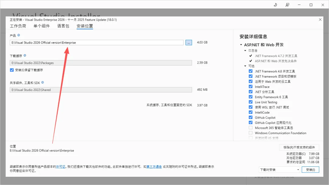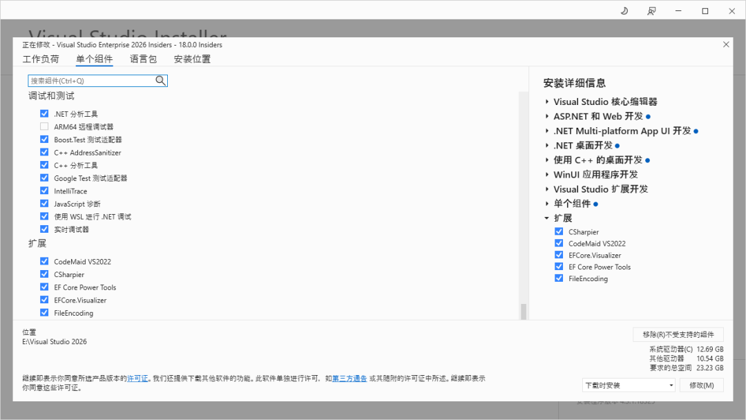 最近发现很多小伙伴反馈 Visual Studio 2026 安装占用磁盘空间较大,今天大姚出一期 Visual Studio 2026 正式版下载与安装详细教程,我们可以通过仅选择所需的工作负荷、组件、语言包来节省安装时间和磁盘空间,希望可以帮助到有需要的小伙伴!