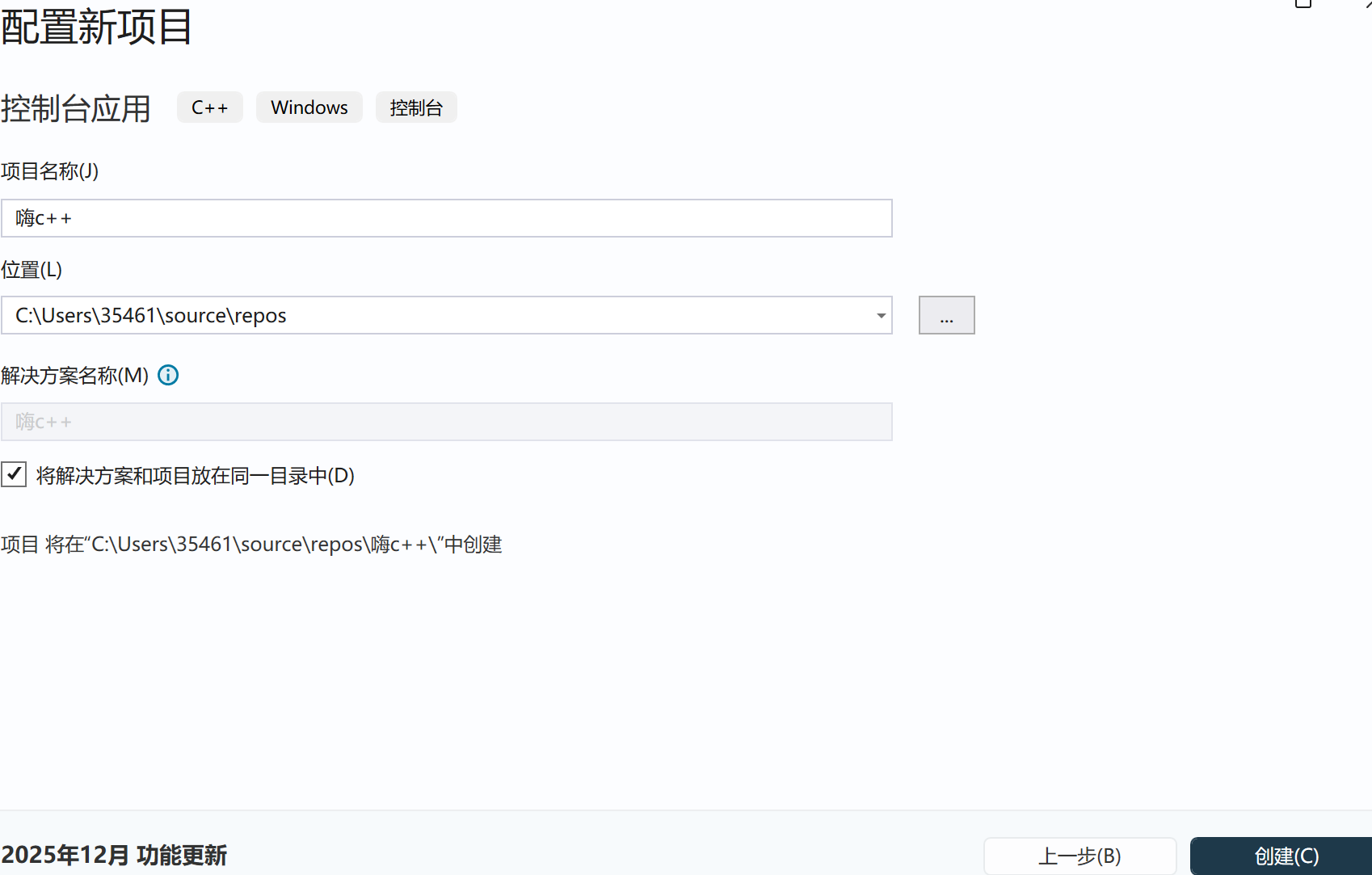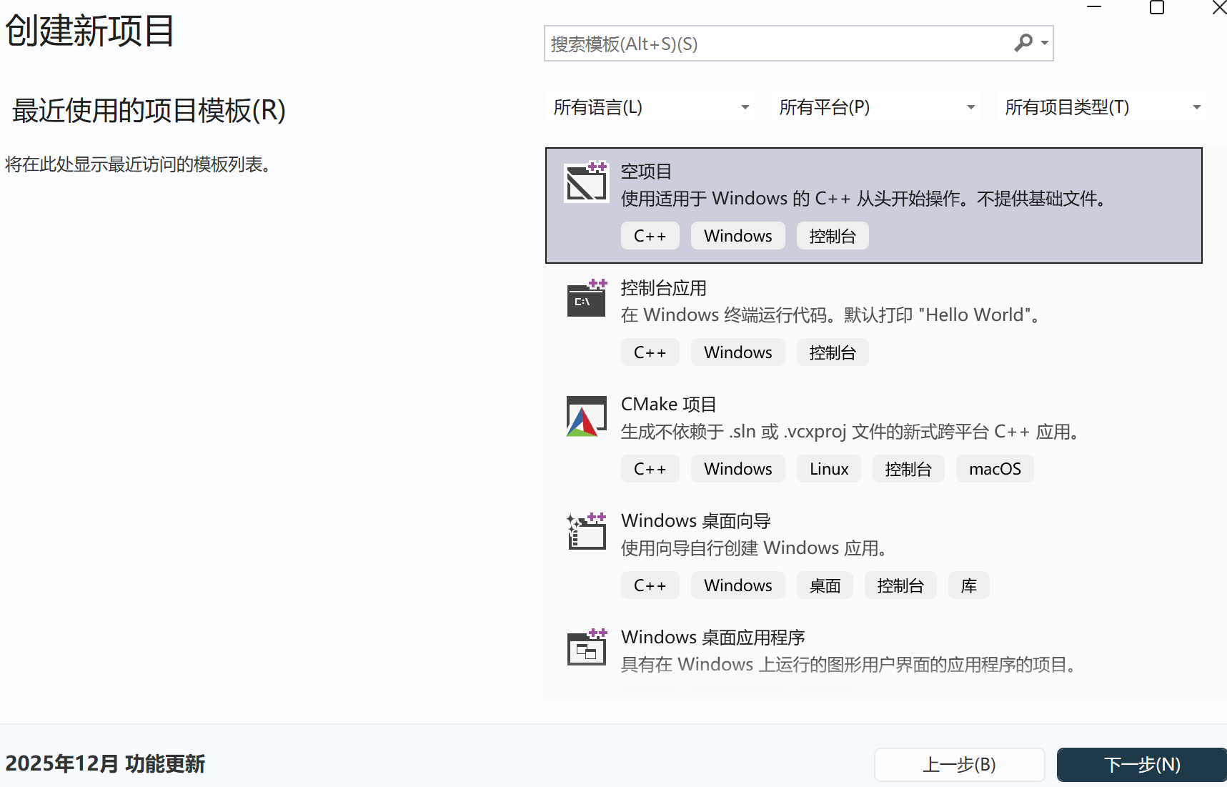 下划找到并勾选使用C++的桌面开发