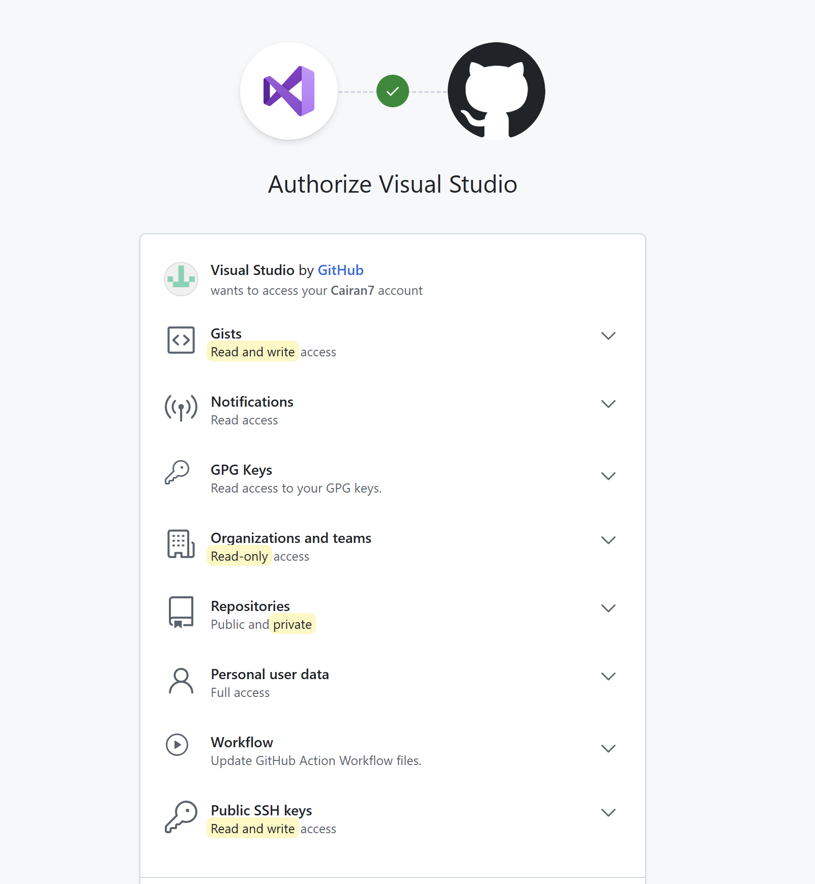 在弹出提示时,允许打开VisualStudio ,即可完成账号关联登录