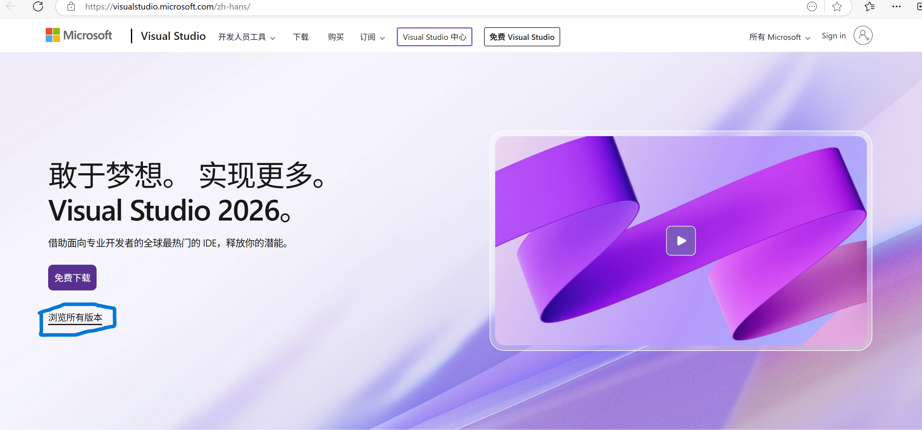 启动浏览器登录官网 :visualstudio.microsoft.com