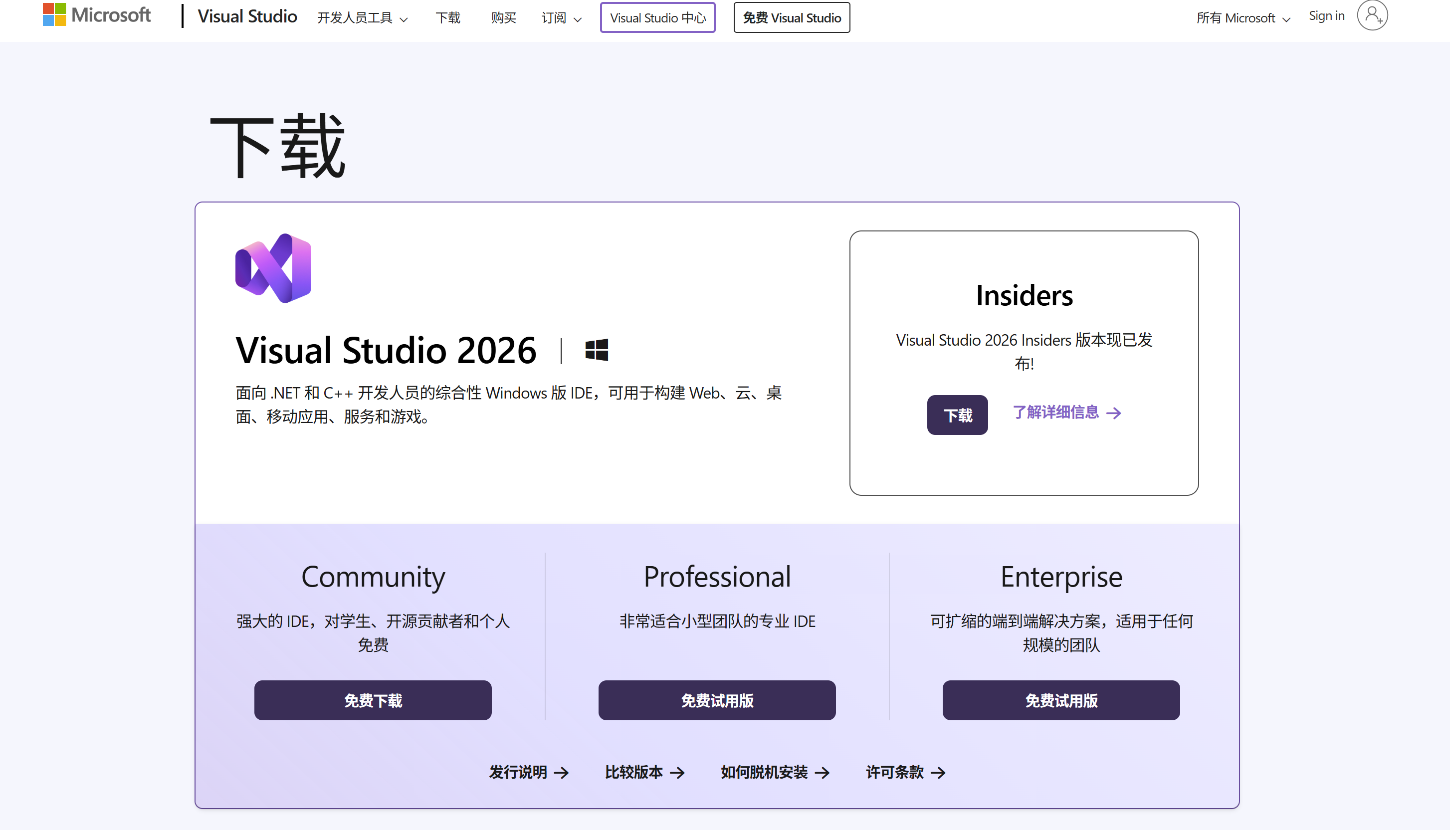 Visual Studio2026下载与安装