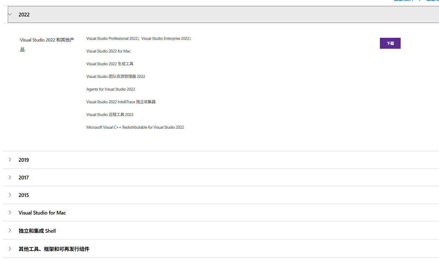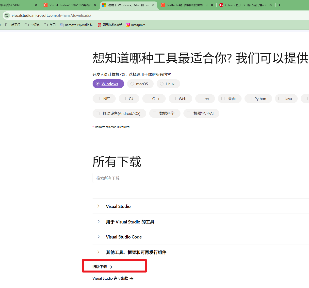 然后就能找到Visual Studio提供的历史版本下载