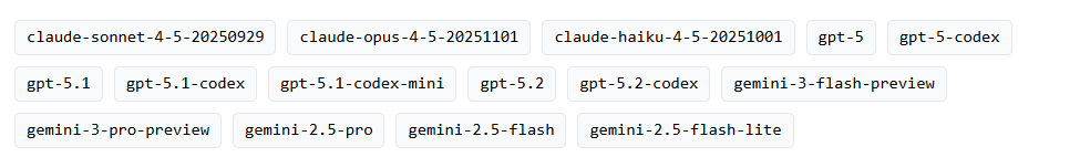 你可以在 models JSON节点中中添加更多可用的模型。以下是完整的模型列表: