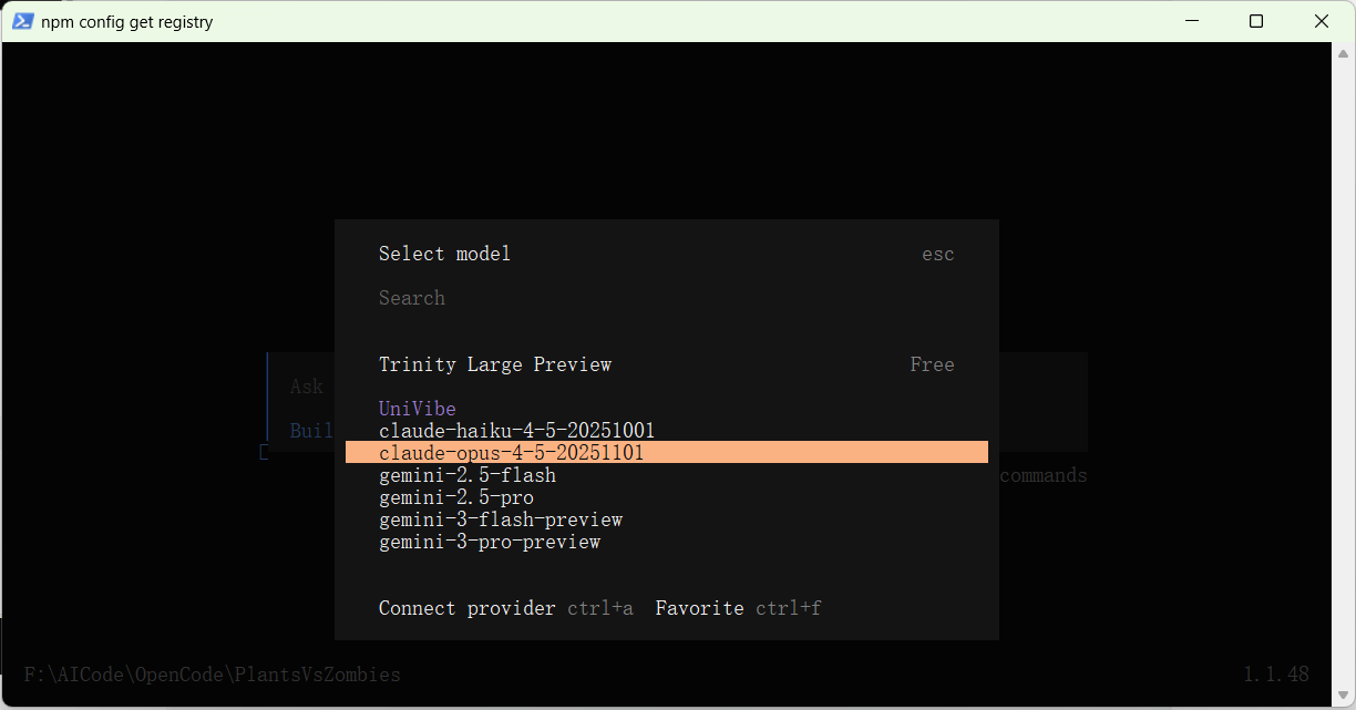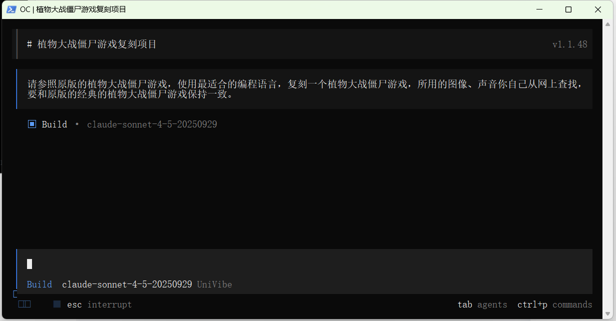 选择模型后,你就可以开始使用 OpenCode 进行 AI 辅助编程了。