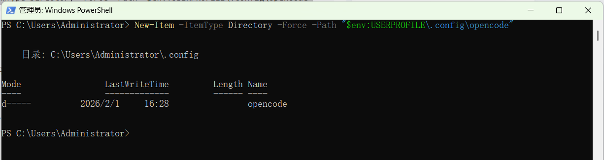 New-Item -ItemType Directory -Force -Path "$env:USERPROFILE\.config\opencode"