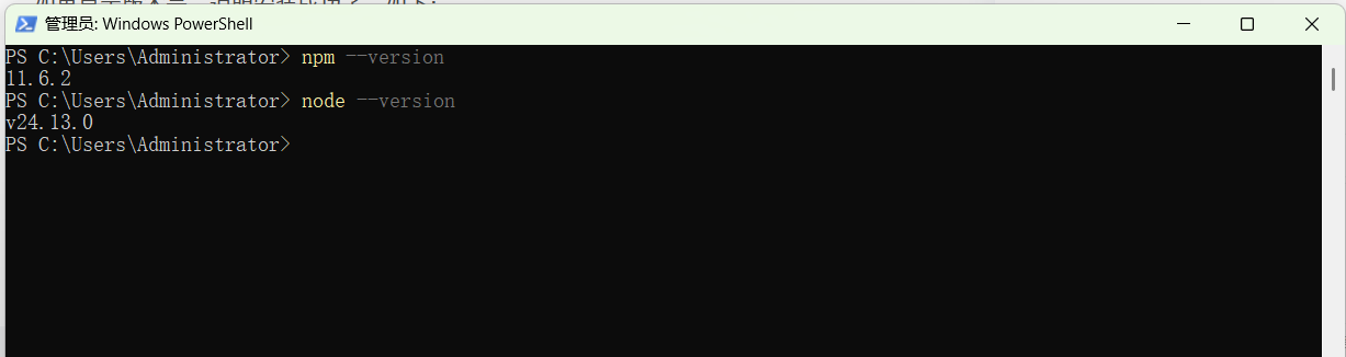 安装后验证Node.js是否正常,打开 PowerShell 或 CMD,输入以下命令: