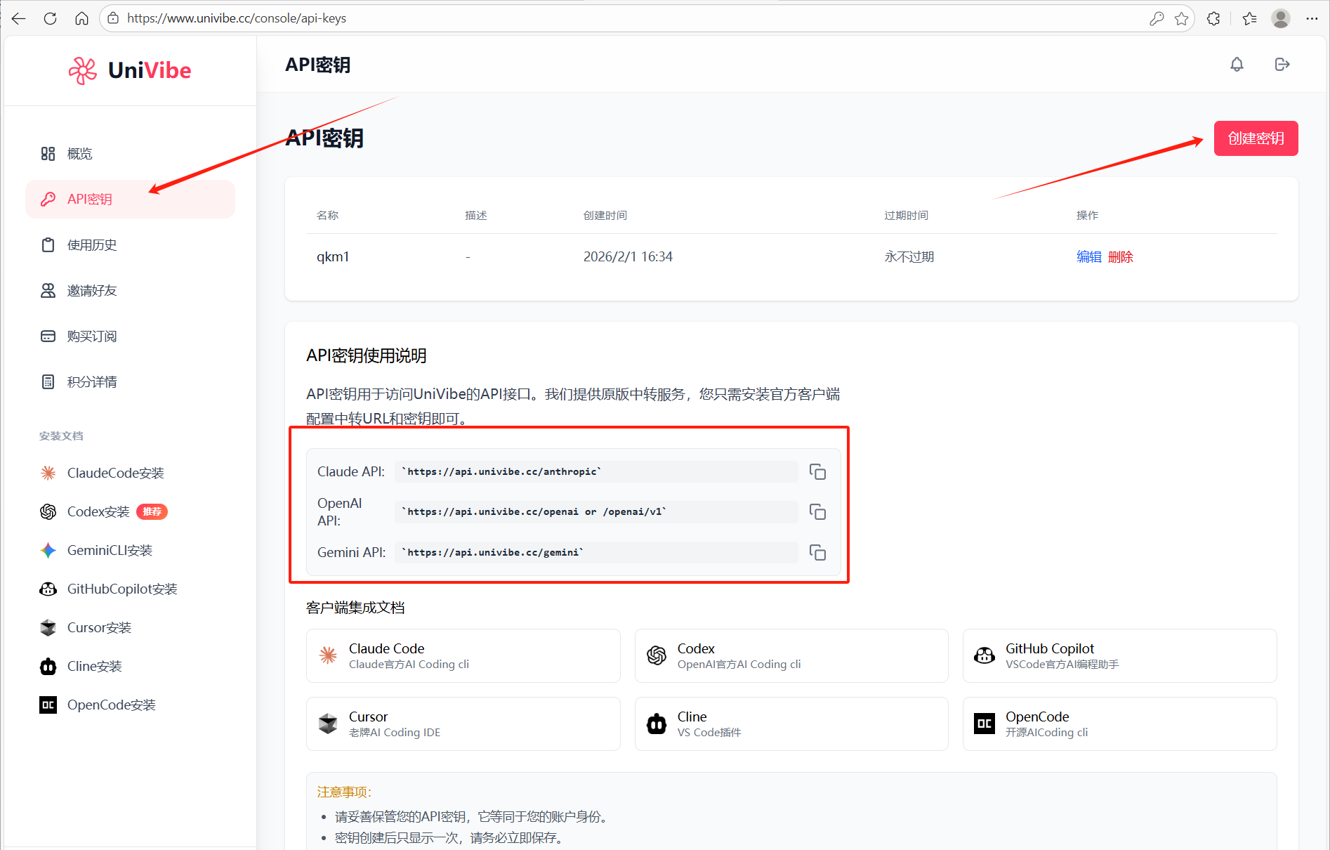 - 确认 API 密钥在 UniVibe 控制台中是有效的