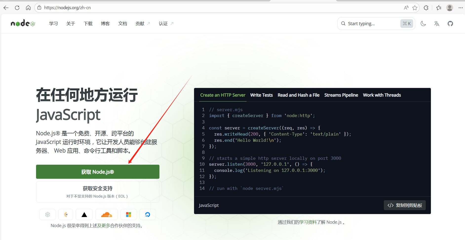 点击 "LTS" 版本进行下载(推荐长期支持版本)