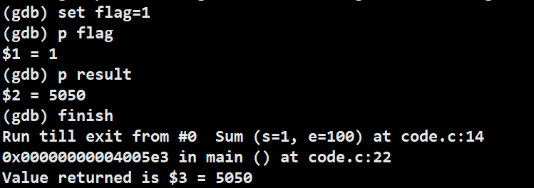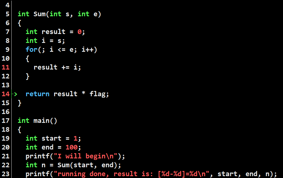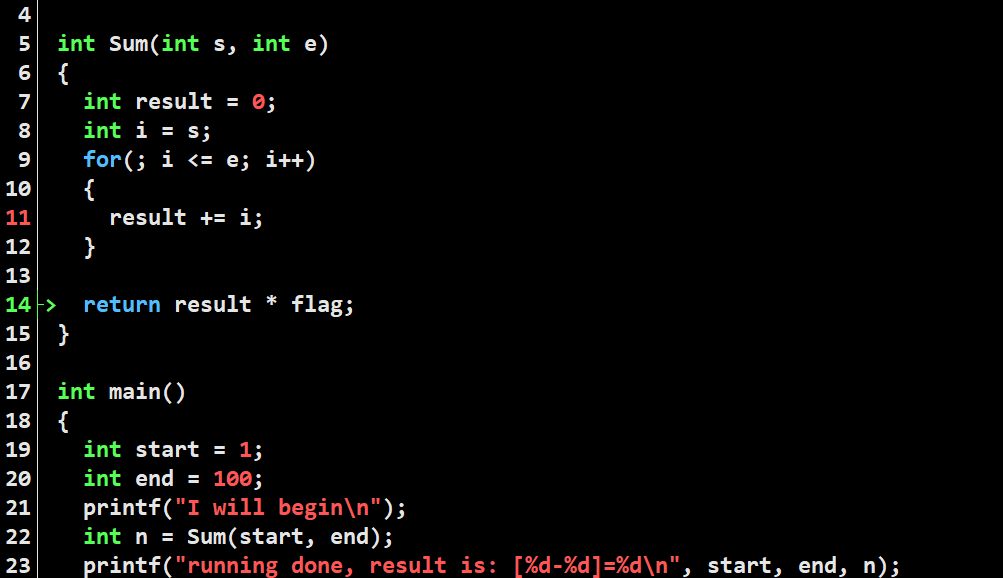 printf("running done, result is: [%d-%d]=%d\n", start, end, n);