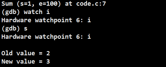 执行时监视一个表达式(如变量)的值。如果监视的表达式在程序运行期间的值发生变化,GDB 会暂停程序的执行,