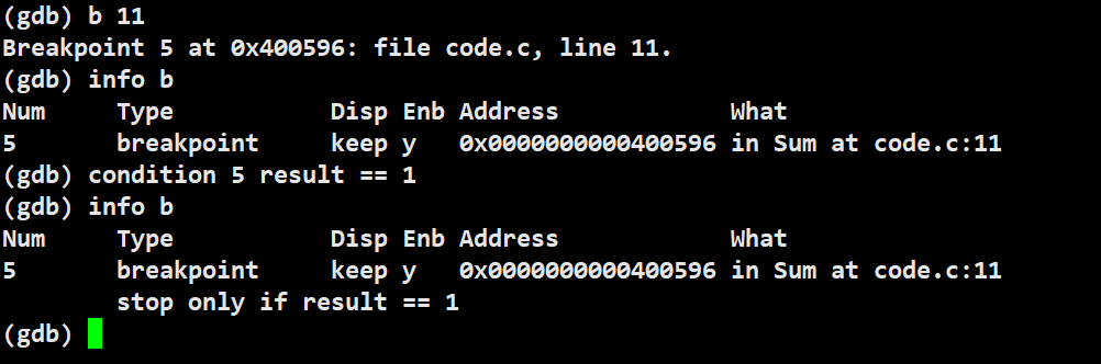 - 给已有断点追加: condition 2 i == 30 ,其中 2 是已有断点编号,没有 if