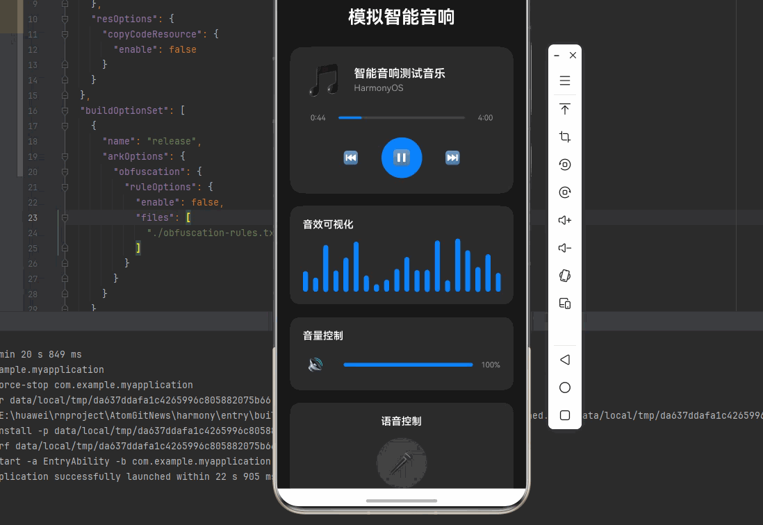 适配「语音命令识别」的场景,实现语音命令处理,只需添加命令识别逻辑,无需改动核心逻辑,一行代码实现,鸿蒙端完美适配: