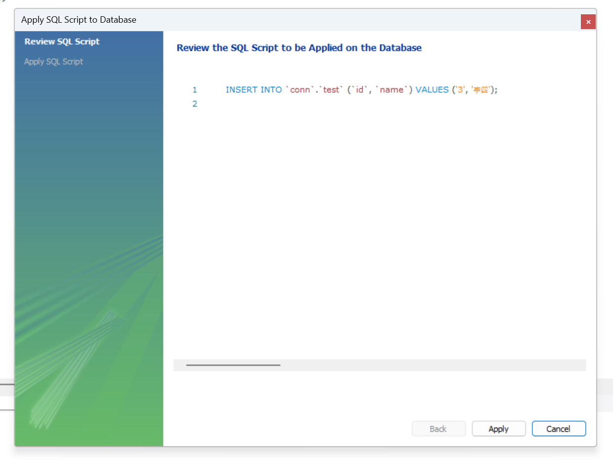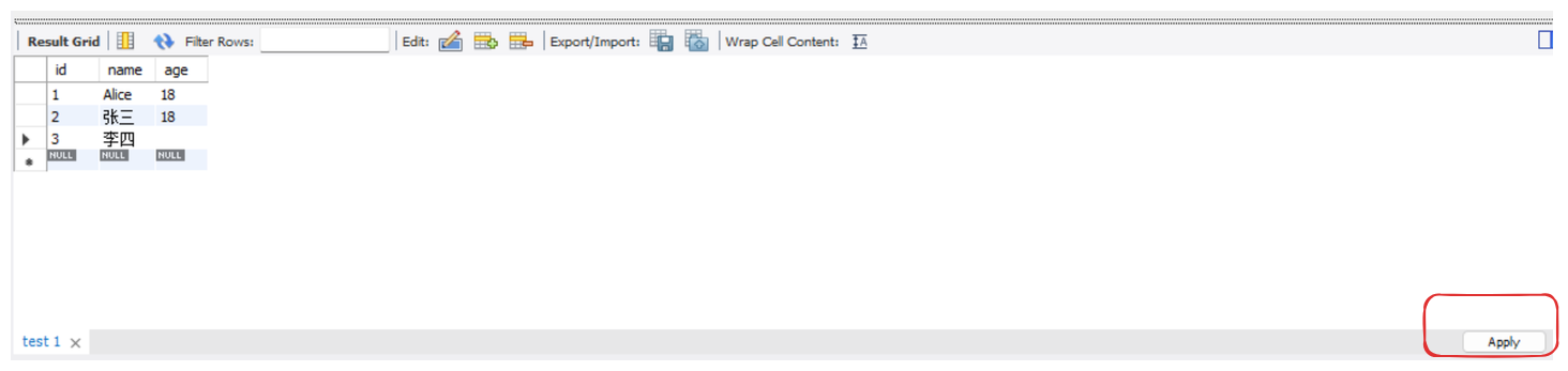 我们能直接在图形界面写入数据,然后点击右下角的apply