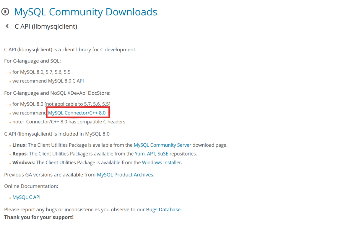 - 要想用C语言连接mysql,我们需要从mysql官网下载mysql提供的连接库