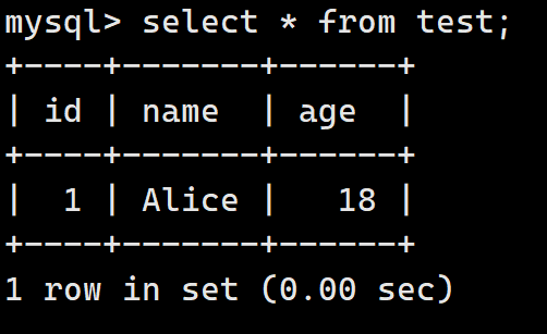 Query OK, 1 row affected (0.01 sec)