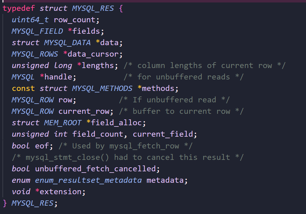 我们可以看到MYSQL_RES的结构: