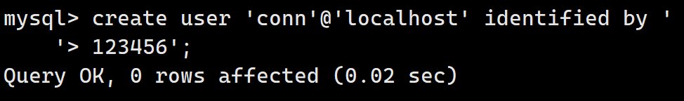mysql> grant all on conn.* to 'conn'@'localhost';