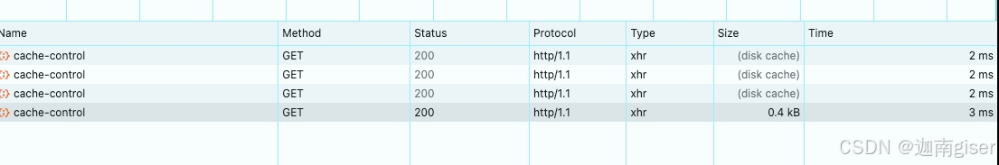 首次请求后,命中强制缓存(disk cache);60s后缓存过期,重新请求资源