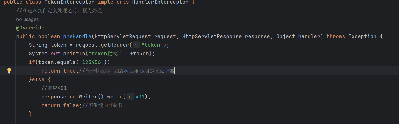 用下一个拦截器或处理器方法),返回 false 表示流程中断,不会继续调用其他