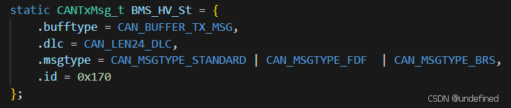 声明需要处理的报文变量,并为报文中的信号赋值。需特别注意按原DBC文件的定义处理字节序(大小端)。