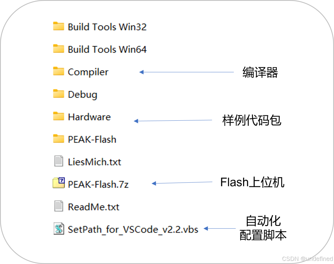 虹科PCAN驱动、开发工具包 (集成了编译器、样例代码工程、Flash刷写上位机以及自动化配置脚本)、代码编辑器(推荐使用VS Code)
