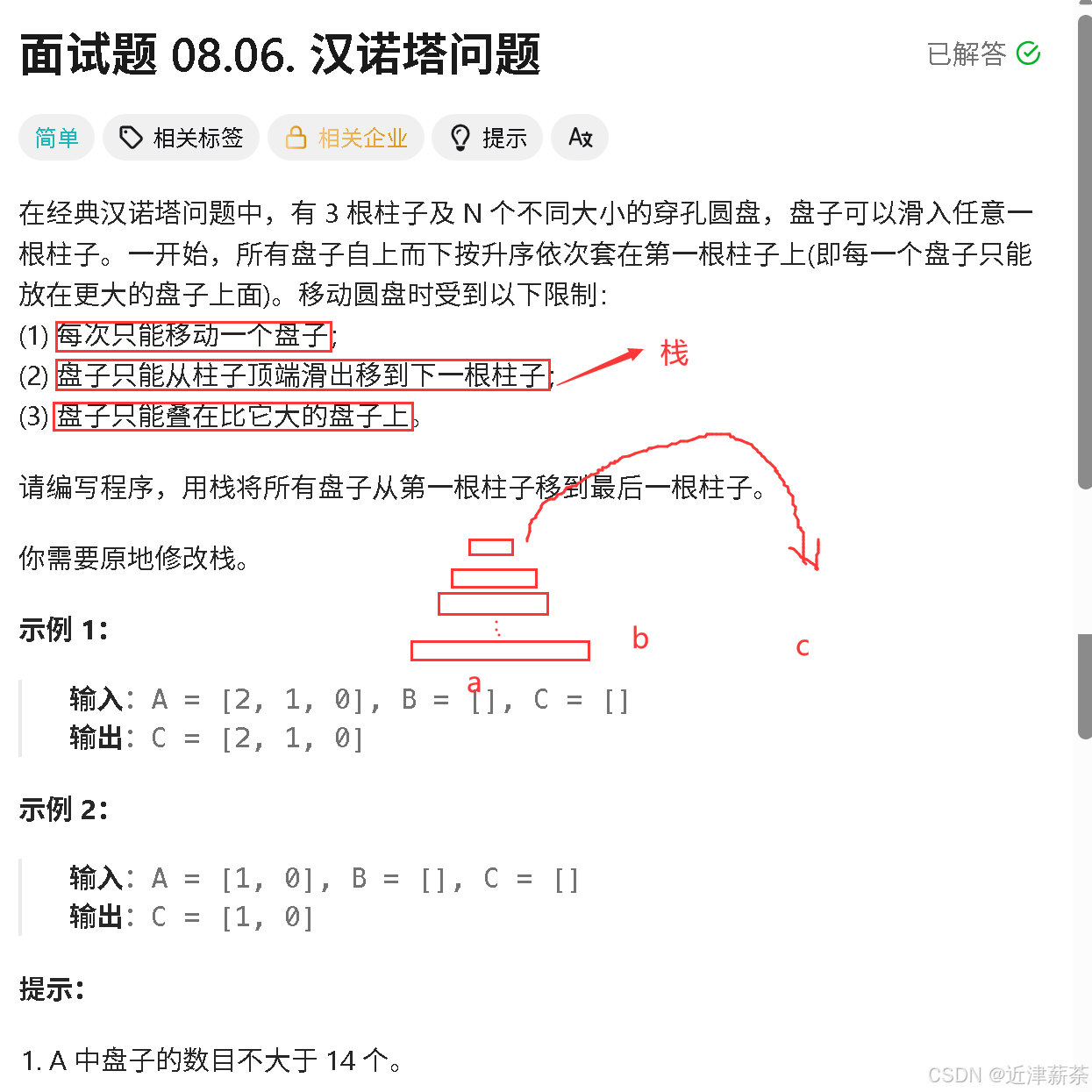 - 第二步:把a柱剩下来的一个盘子放到c柱上