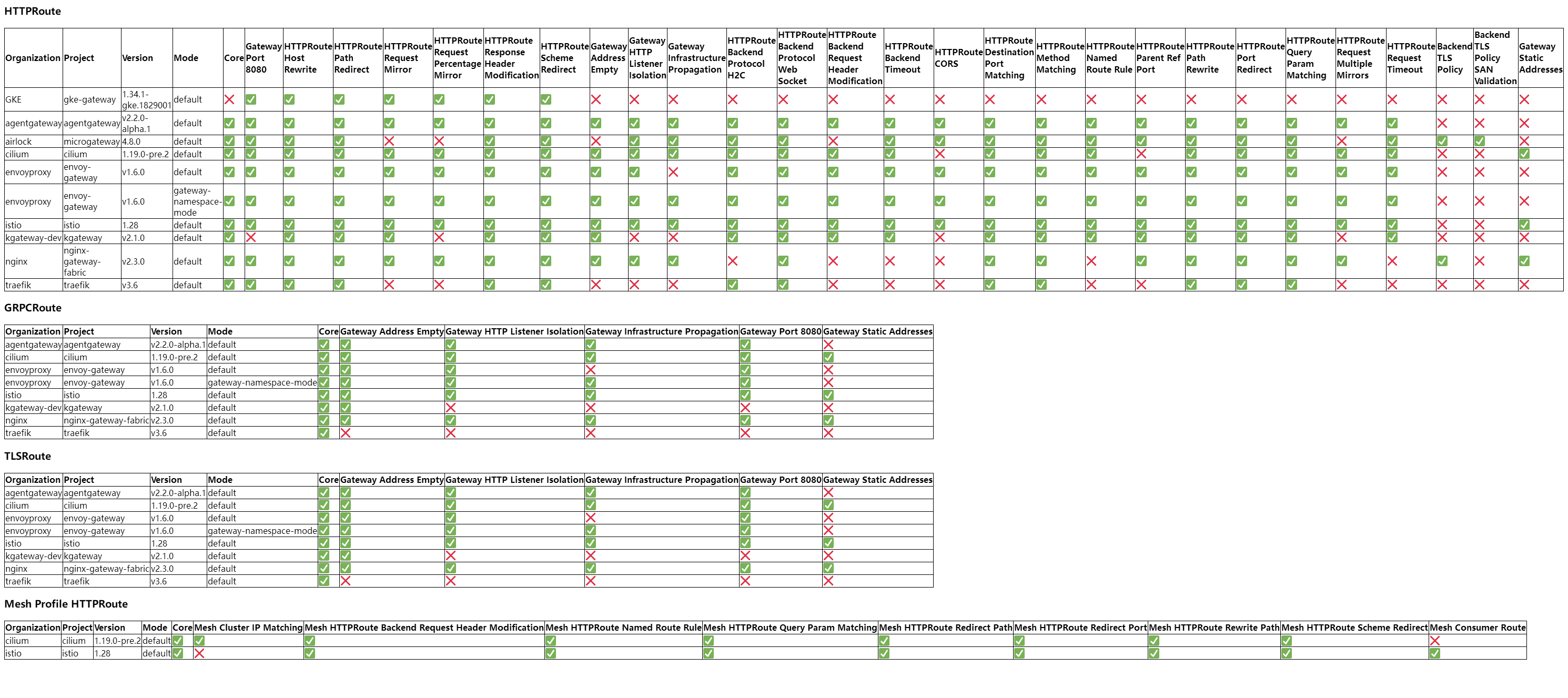 - 协议扩展:除 HTTPRoute 外,已支持 GRPCRoute、TCPRoute、TLSRoute,覆盖 L4/L7 全场景。