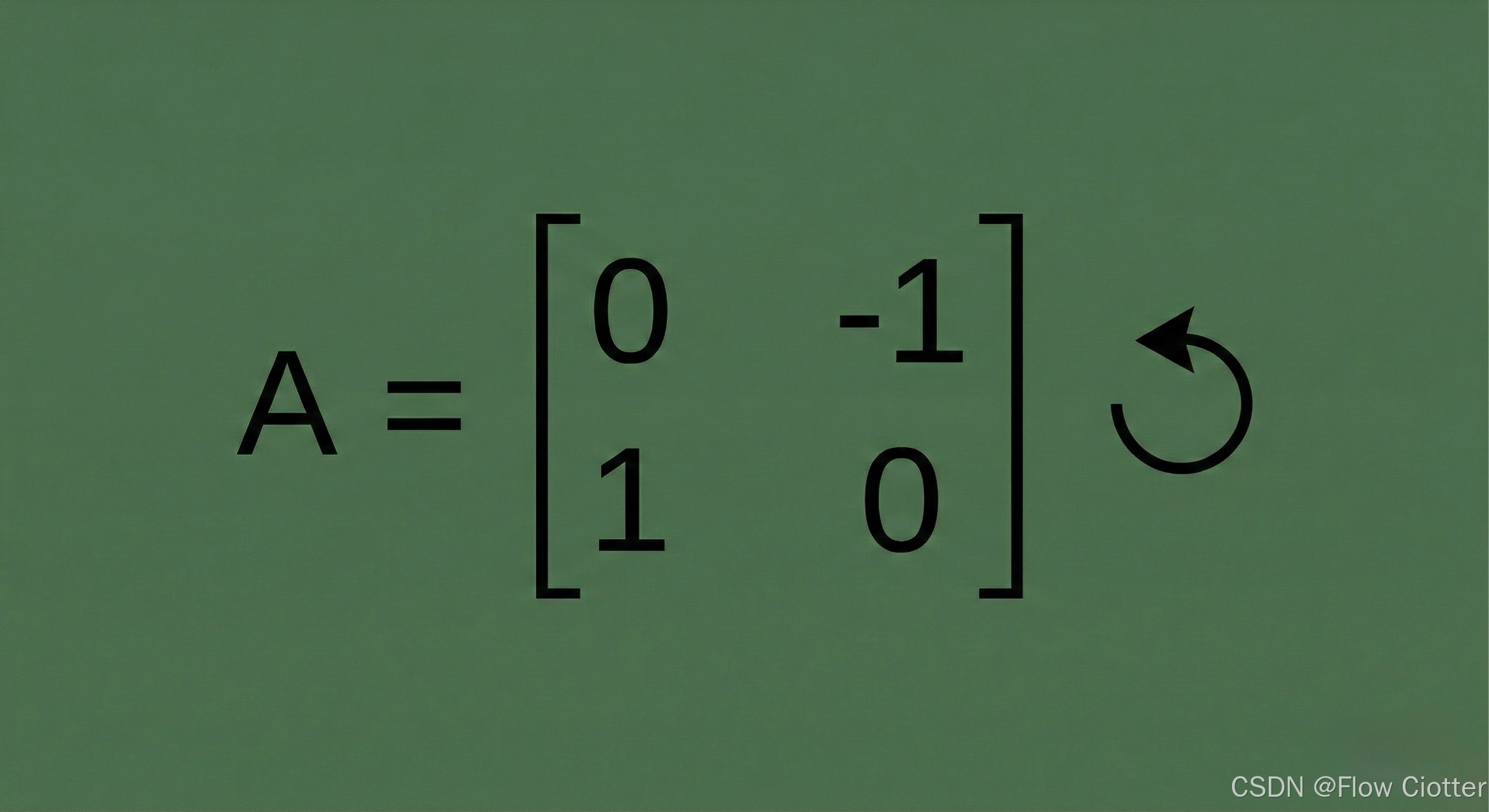 下图展示了一个 2x2 的矩阵 A。这个特定的矩阵代表了一个逆时针旋转 90 度的变换规则。