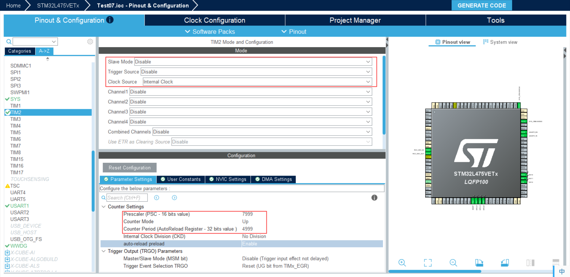 我们需要将TIM2的输入时钟设置为10kHz, 那么 10kHz = 80,000kHz / 8000