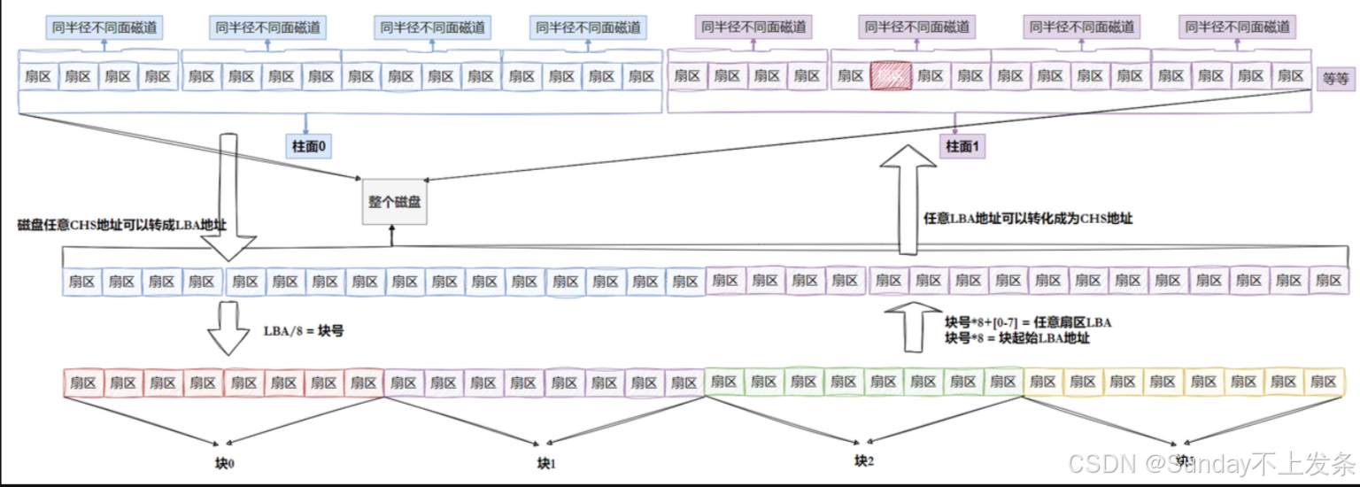 - 磁盘就是一个三维数组,我们把它看待成为一个"一维数组",数组下标就是LBA,每个元素都是扇区