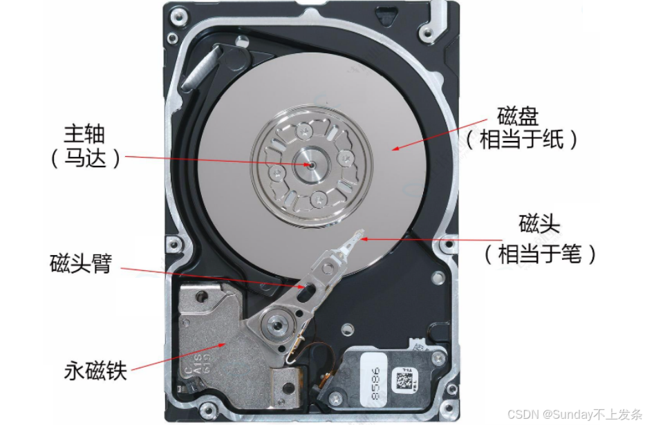 所以,在磁盘上存储数据就是用磁头改变磁盘上一定区域内磁性物质的磁化方向(0/1)。
