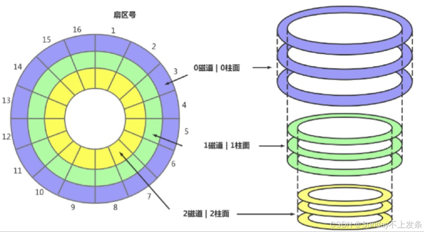 **• 柱面号:**确定磁头要访问哪一个柱面(cylinder),即确定在哪个磁道;