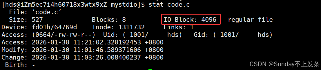 模式(权限) 、硬链接数(引用计数) 、所有者 、所属组 、大小 、最后修改时间 、文件名想要查看更详细的信息就需要用:stat 文件名