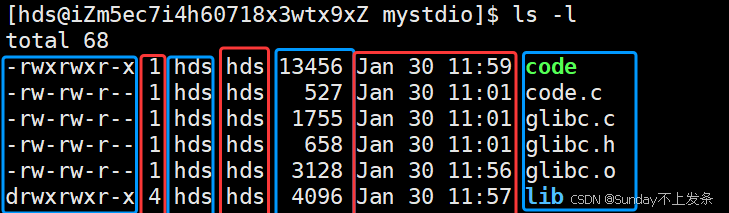 文件 = 属性 + 数据,通过ls -l就可以查看文件的相关数据: