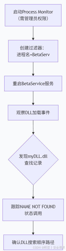 | 3. 触发监控 | 重启BetaService服务 | 激活服务的DLL加载行为 |