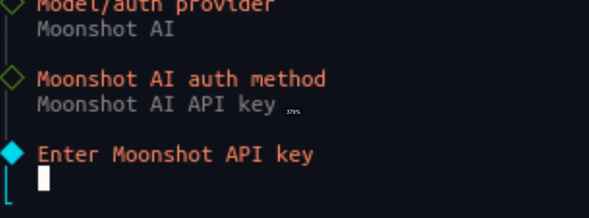 输入模型 API key 回车后,如下界面表示连接模型 API 成功,输入准备好的API key: