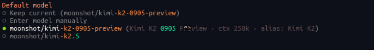 在输入模型API key后回车如下图则表则连接模型API成功,继续选择使用的模型: